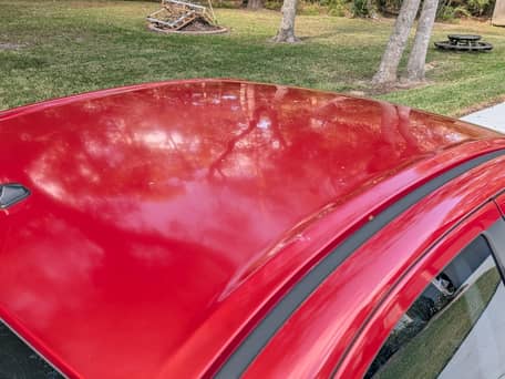 - Défaut du vernis sur le toit et l'aileron arrière ; décollement de la peinture sur la prise d'air du capot