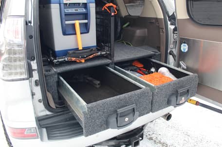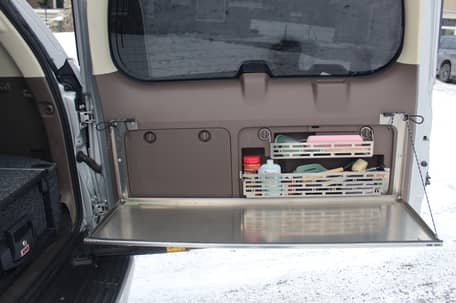 - Les modifications notables signalées par le vendeur sont nombreuses et la liste complète est détaillée ci-dessous. Parmi les points forts, citons les amortisseurs Bilstein série 5100, les ressorts arrière Old Man Emu de poids moyen, les jantes Method 309 de 17 pouces, un support de roue de secours pivotant Wilco Offroad, une galerie de toit Prinsu, une tente de toit iKamper Skycamp, un réfrigérateur/congélateur et un compresseur d'air ARB, ainsi qu'un rangement de porte arrière Kaon.