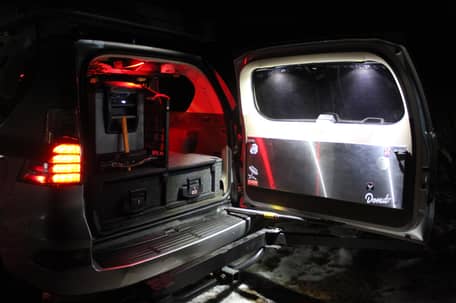 - Feux de roche ambrés de la série A de Rigid Industries (fixés sur une galerie de toit Prinsu)
