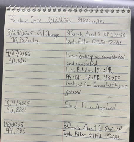 - Mars 2025 (90 357 miles) : Vidange d’huile moteur et remplacement du filtre