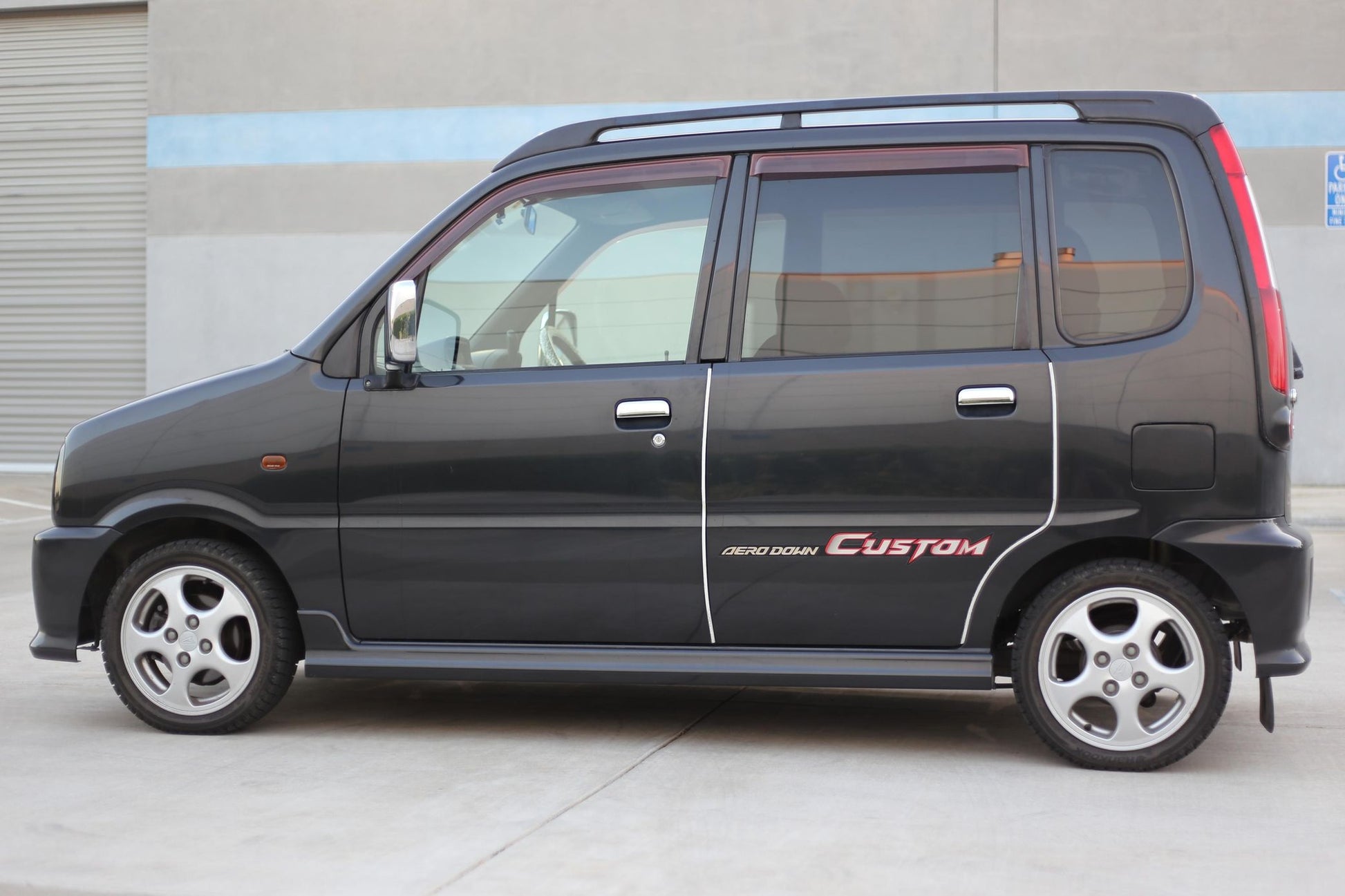 - The Move Aero Down Custom is a unique variant of the popular Daihatsu Move. This Aero Down Custom version is distinguished by a specific body kit and exterior graphics, setting it apart from standard Move models. Despite its compact size, it is surprisingly practical thanks to features such as flat-folding rear seats and a side-opening tailgate.