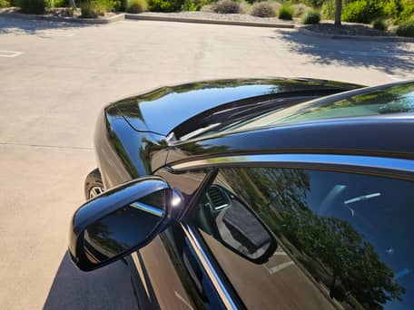 - Les modifications signalées par le vendeur comprennent des plaquettes de frein Hawk HPS 5.0, un aileron de coffre arrière HFP et un film teinté pour vitres SunTek CXP.