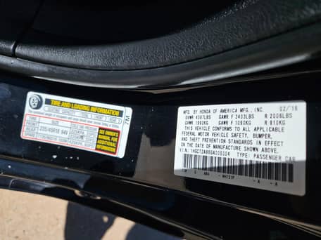 - Le rapport d'historique Carfax ci-joint indique que cette Accord a subi des « dommages mineurs » à l'arrière en septembre 2017. Le vendeur précise que le pare-chocs arrière a été repeint en conséquence.