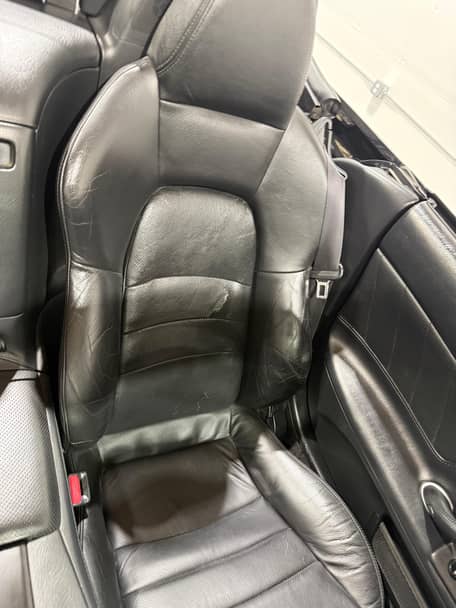 - Usure, plis et craquelures sur les renforts latéraux du siège ; décollement du revêtement du dossier passager