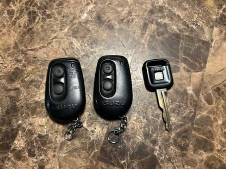 This is a 1992 Isuzu Space Cab SX 4x4, red in color with a grey fabric interior.