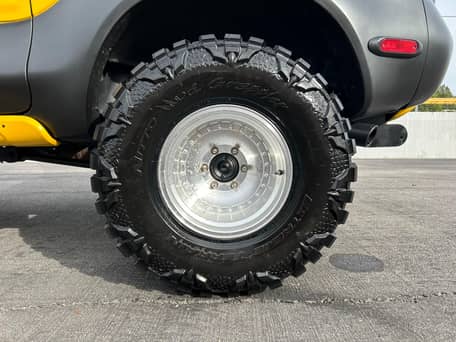 - Modifications reported by the seller include a bed-mounted roll bar with off-road lighting, a bed liner applied to the inside of the bed, a JVC Bluetooth stereo system, and a custom center console.