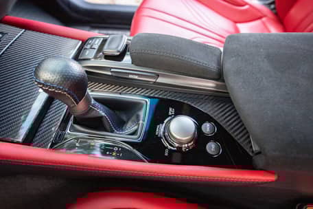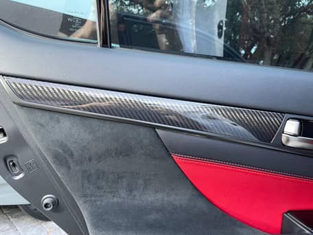 - According to the price tag visible in the gallery, the original equipment includes 19-inch BBS forged wheels, a torque-vectoring differential, Brembo brakes, a power sunroof, leather and Alcantara upholstery, heated and ventilated front sport seats, carbon fiber trim, illuminated door sills, a head-up display, adaptive cruise control, and a Mark Levinson audio system. The seller indicated that the following modifications were added: XPEL Stealth paint protection film, ceramic-tinted windows, and VIOFO dashcams front and rear.