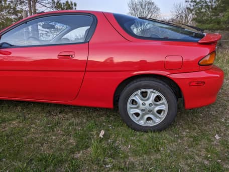 Here is a 1993 Mazda MX-3 GS, in Flame Red with a black interior.