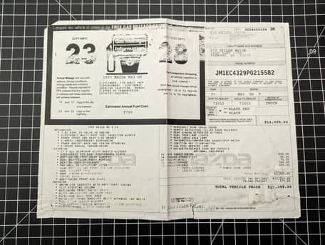 According to the original price tag visible in the photo gallery, this MX-3 had a suggested retail price of $17,395 and was equipped with the Performance Package, 15-inch alloy wheels, four-wheel disc brakes, independent suspension, a power sunroof, cloth seats, air conditioning, and more, as detailed below. The seller reports no modifications.