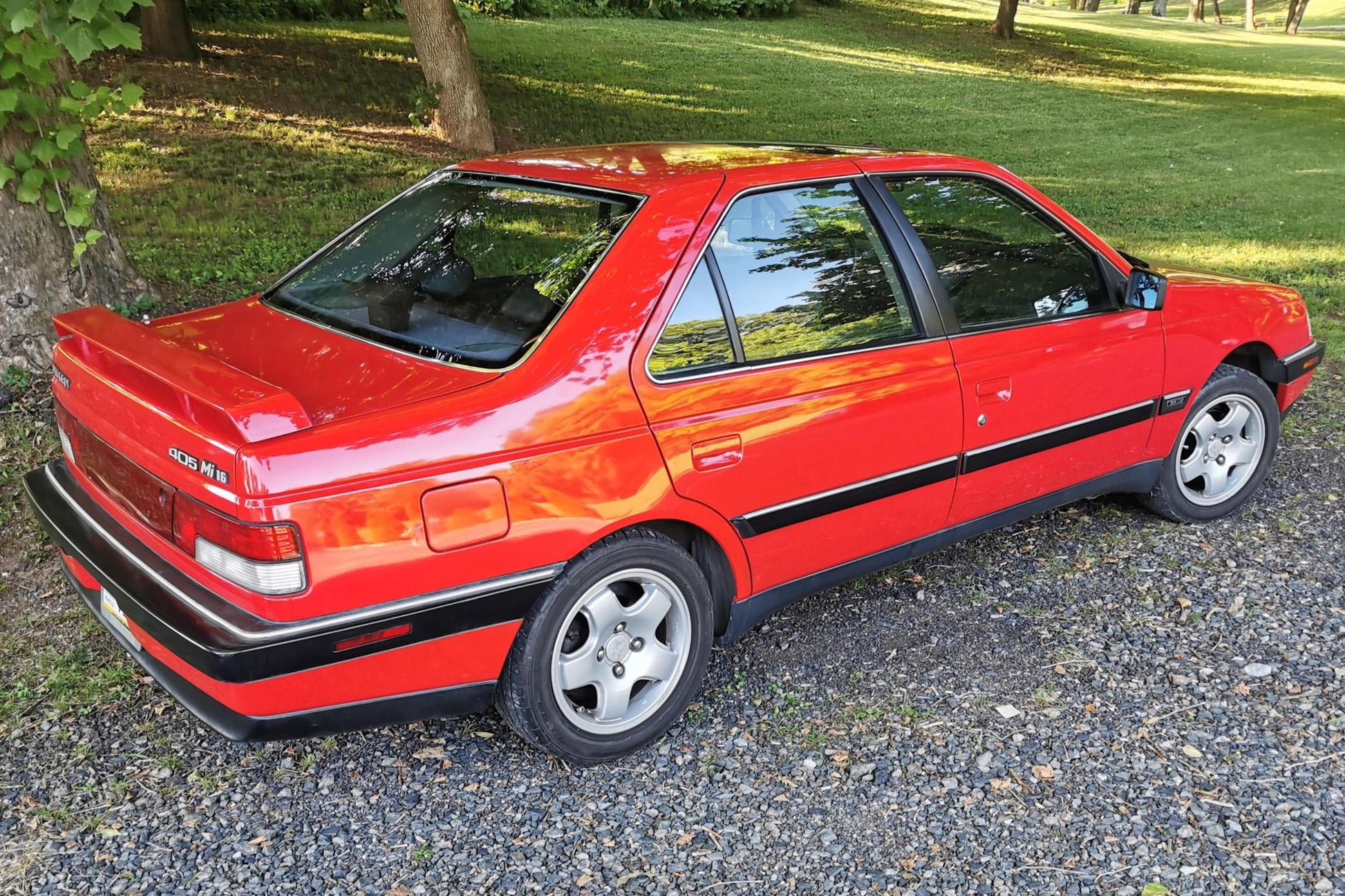 This... is a 1991 Peugeot 405 Mi16, Vallelunga colour with a black interior.