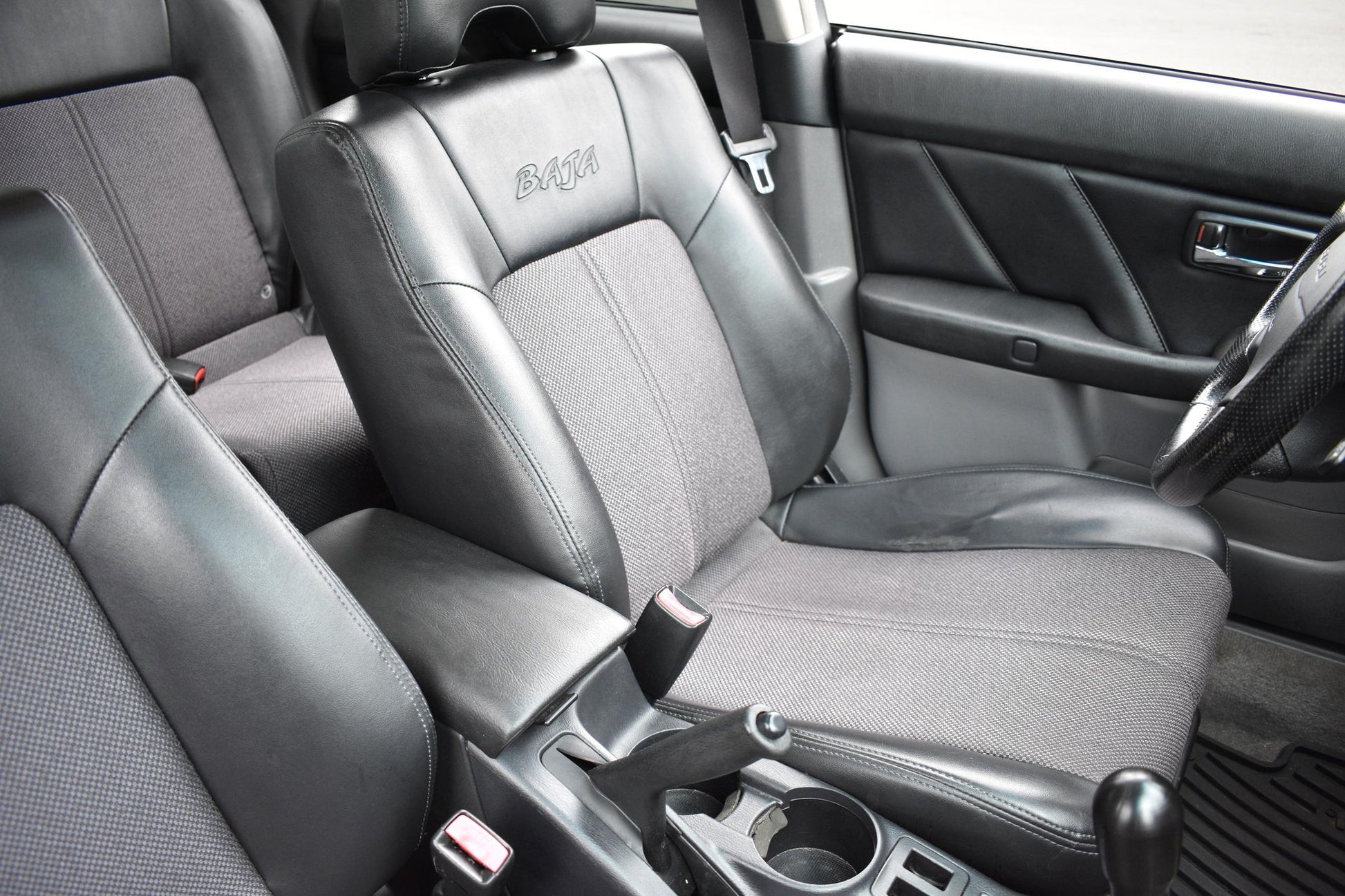 - Les modifications notables signalées par le vendeur incluent un couvre-benne Snuglid, un levier de vitesses à course réduite Kartboy avec ses bagues, un pommeau de levier de vitesses lesté COBB Tuning et un autoradio Sony avec caméra de recul. Subaru a fait son retour sur le segment des pick-ups après une longue absence avec la sortie du Baja pour l'année-modèle 2003. Dérivé de l'Outback, il a pris la relève du BRAT en offrant la polyvalence d'un pick-up dans un format proche de celui d'une voiture.