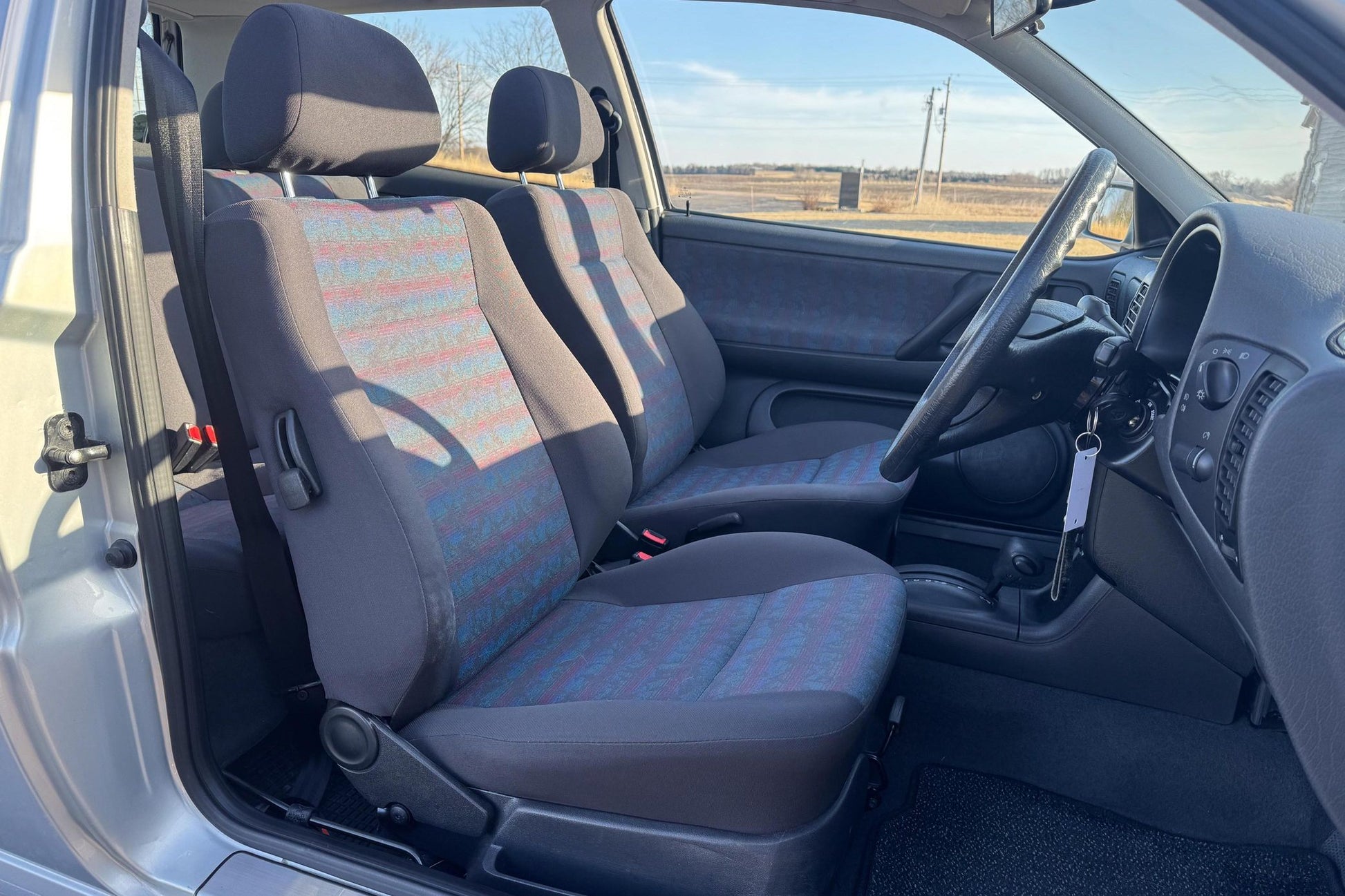 Voici une Volkswagen Polo Open Air de 1999, de couleur argent avec un intérieur gris.
